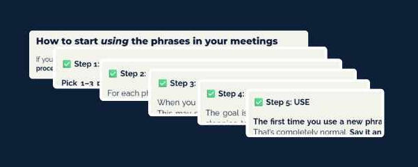 selected the most useful phrases, words and tips you can use right away in your next meeting.and packed all of them into one easy-to-use tool: