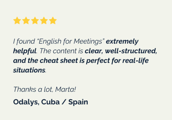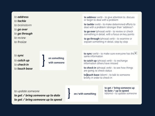 ᯓ➤ You don't learn the entire English dictionary. You focus on words you'll most often hear and need to use in meetings.