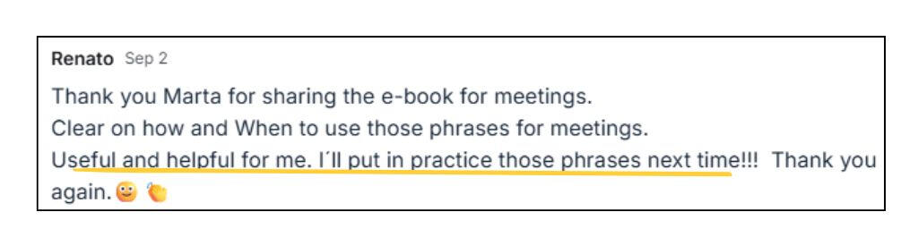 The truth is:You can understand every word in a meeting — and still feel nervous when it’s your turn to talk.You can learn a thousand English words — and still struggle to use them when you speak.And all this time and effort you've invested in learning English can feel like a waste.